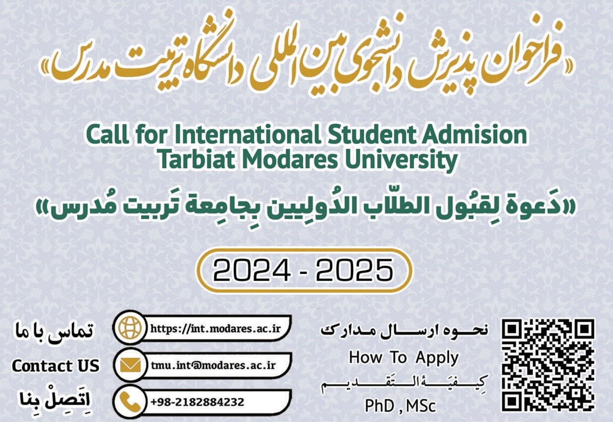 ![]() Tarbiat Modares University will close call for admission of international students for the academic year 1404-1405 (2025-2026) on June 28th ![]() Tarbiat Modares University accepts international students for the second semester of the academic year 1403-1404 (2024-2025). ![]() Tarbiat Modares University accepts international students for the academic year 1403-1404 (2024-2025). ![]() Tarbiat Modares University accepts international students for the academic year 1402-1403 (2023-2024). ![]() Opening ceremony of the academic year of 1401-1402 for the international students of Tarbiat Modares University will be held on Tuesday, November 8, 2022 ![]() Meeting of the director of international scientific cooperation and International Campus accompanied by academic members of Tarbiat Modares University with cultural counselor of People s Republic of China in Iran Mr. Zhu Zihao was held on Monday, September 20, 2022 ![]() Iranian Ambassador to Portugal, the Presidents and the directors of International Affairs office of both universities attended this webinar. |
