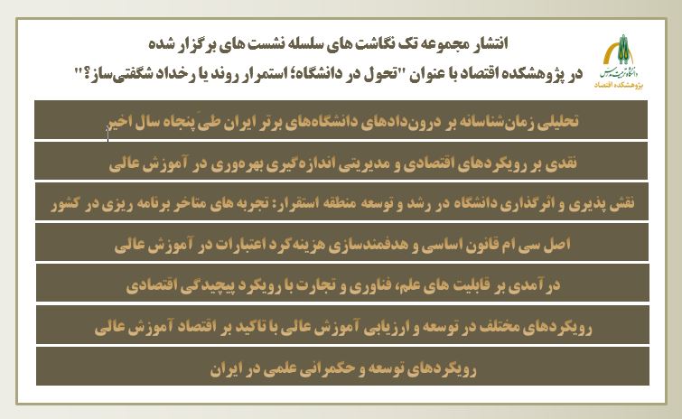 Economic Research Institute started its activity with the aim of promoting and expanding fundamental, applied and developmental research in the field of economics based on societal needs in January 1990 and received the definitive license agreement of Ministry of Science, Research & Technology (MSRT) in 1998. |